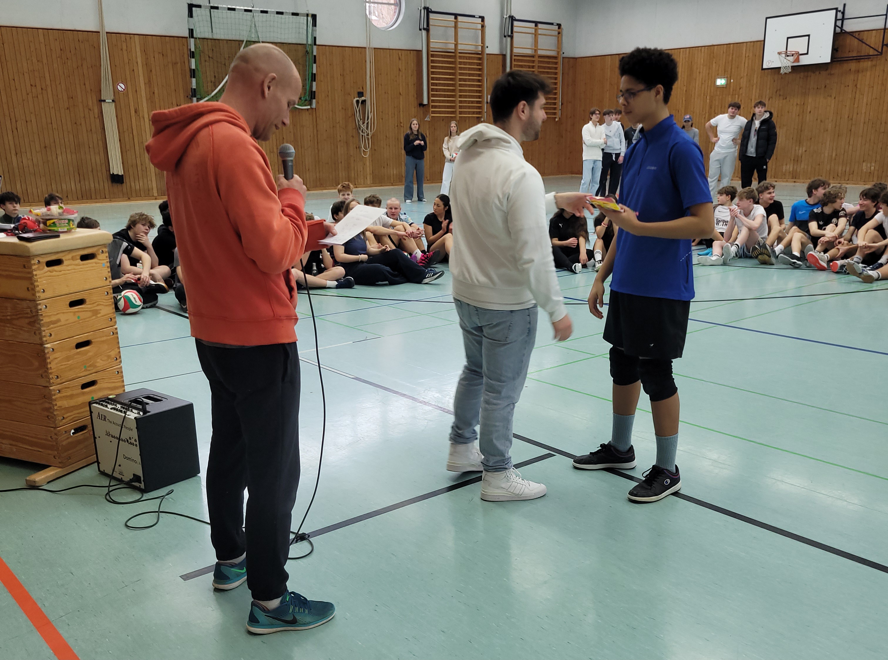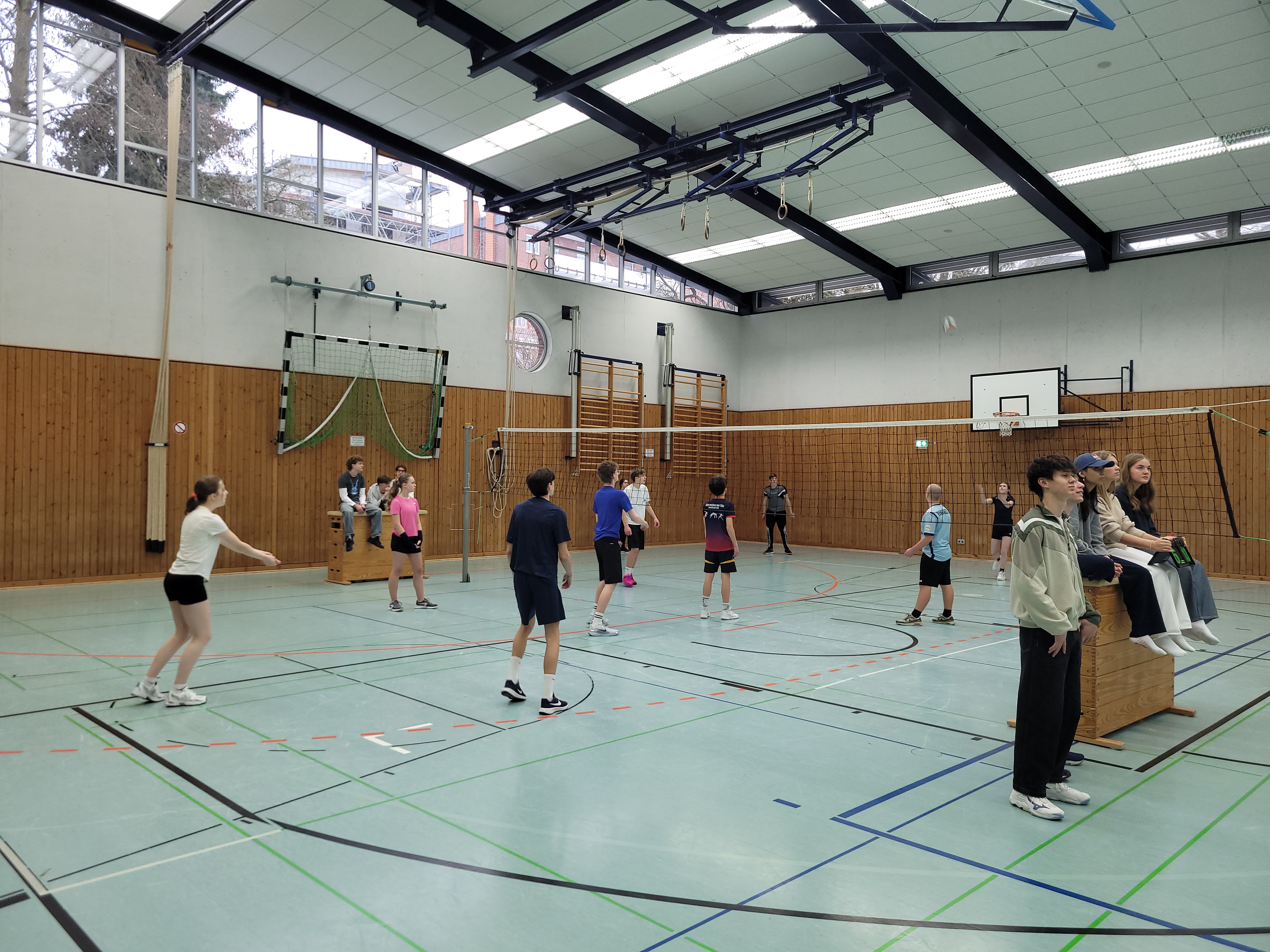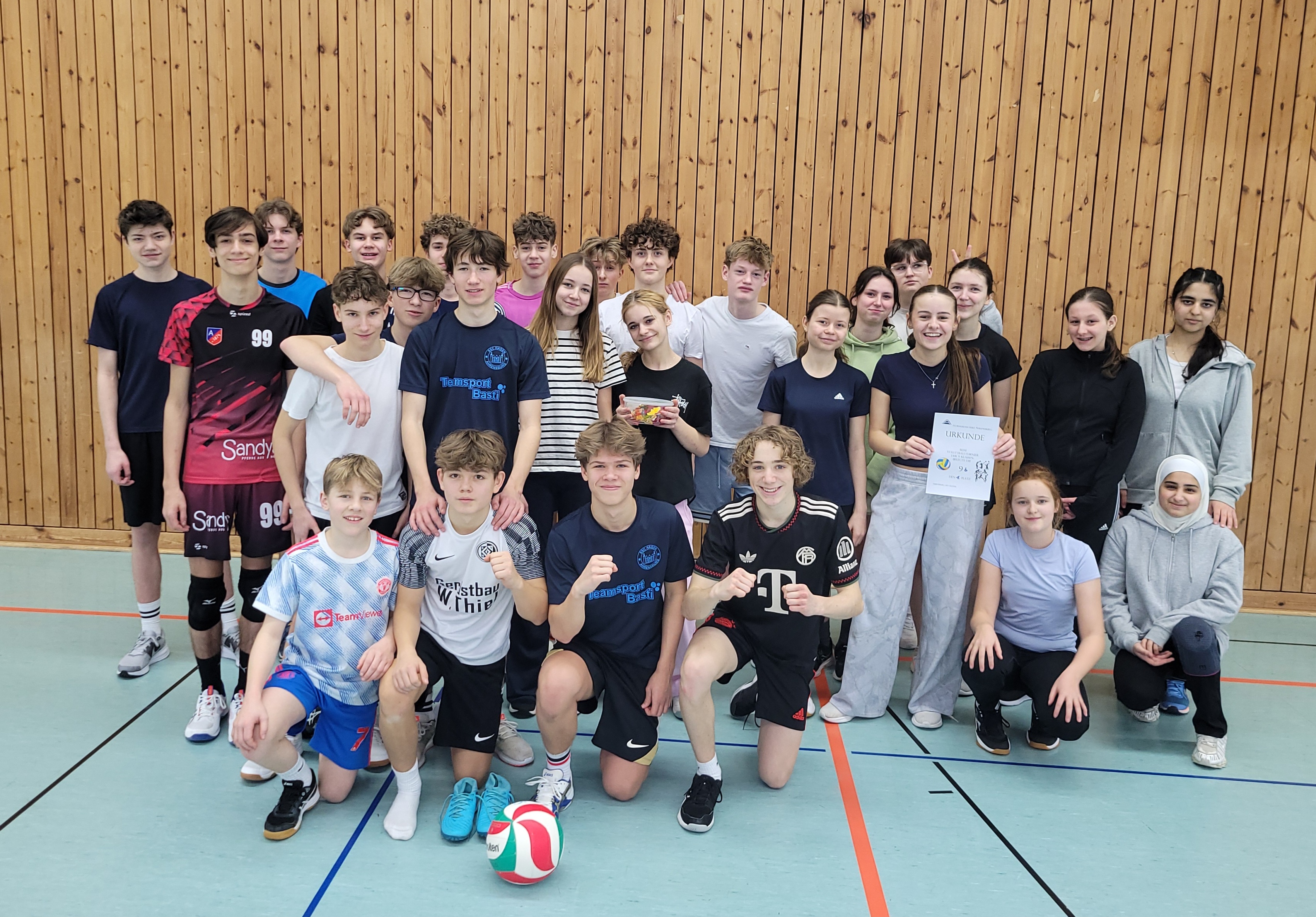 Beim Volleyballturnier der 9. Klassen unserer Schule traten alle Klassen gegeneinander an. Jede Klasse hatte vier gemischte Mannschaften zusammengestellt und alle 12 Mannschaften haben jeder gegen jeden gespielt. Nachdem alle Begegnungen ausgetragen waren, stand das Ergebnis fest: Die 9b holte sich den Klassensieg und durfte sich über den ersten Platz freuen. Platz zwei belegte die 9c, gefolgt von der 9a auf dem dritten Rang.