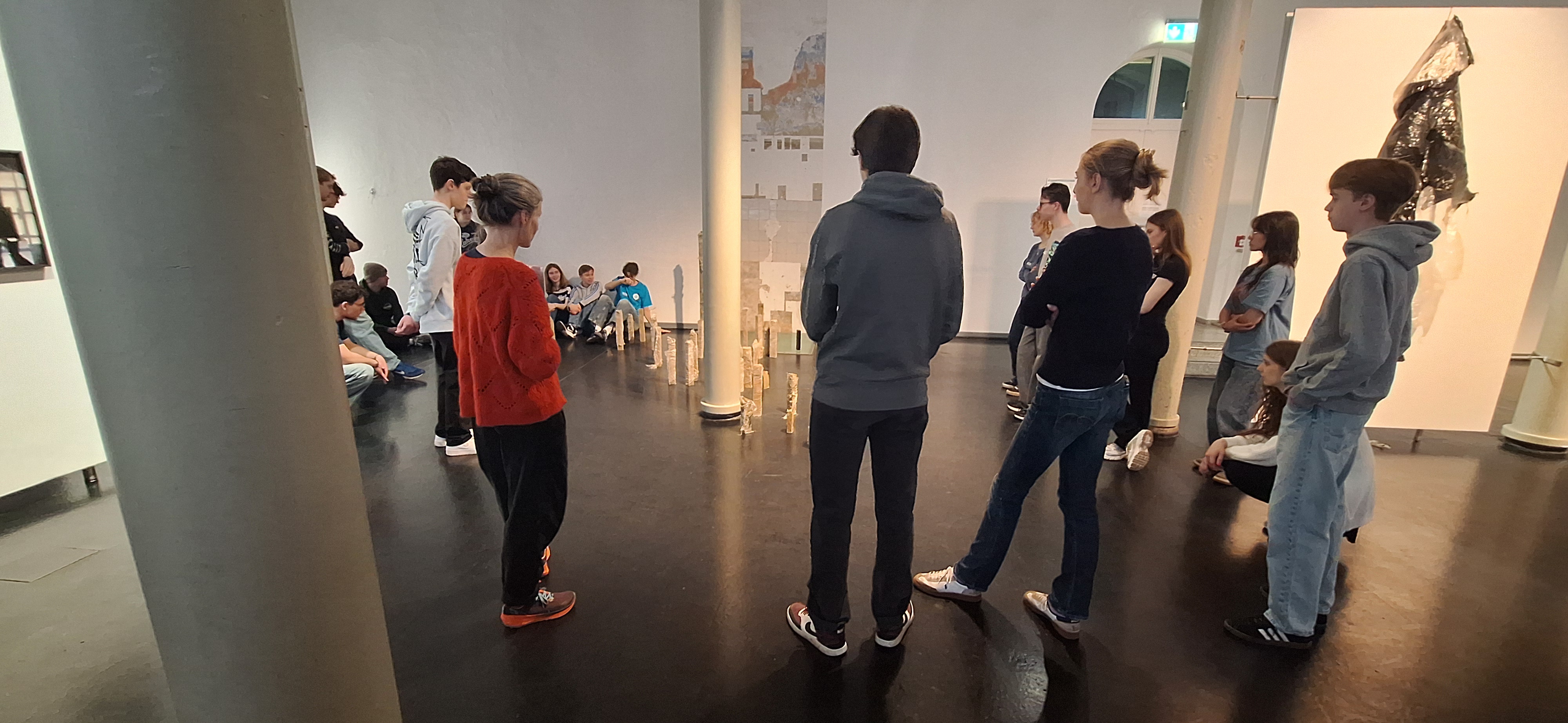Im Rahmen des Kunstunterrichts hat die Oberstufe an einem Workshop zur Ausstellung von Rahel Bruns, im Marstall teilgenommen. Ziel war es, die in der Ausstellung behandelten künstlerischen Fragestellungen nicht nur theoretisch zu erfassen, sondern auch praktisch nachzuvollziehen.