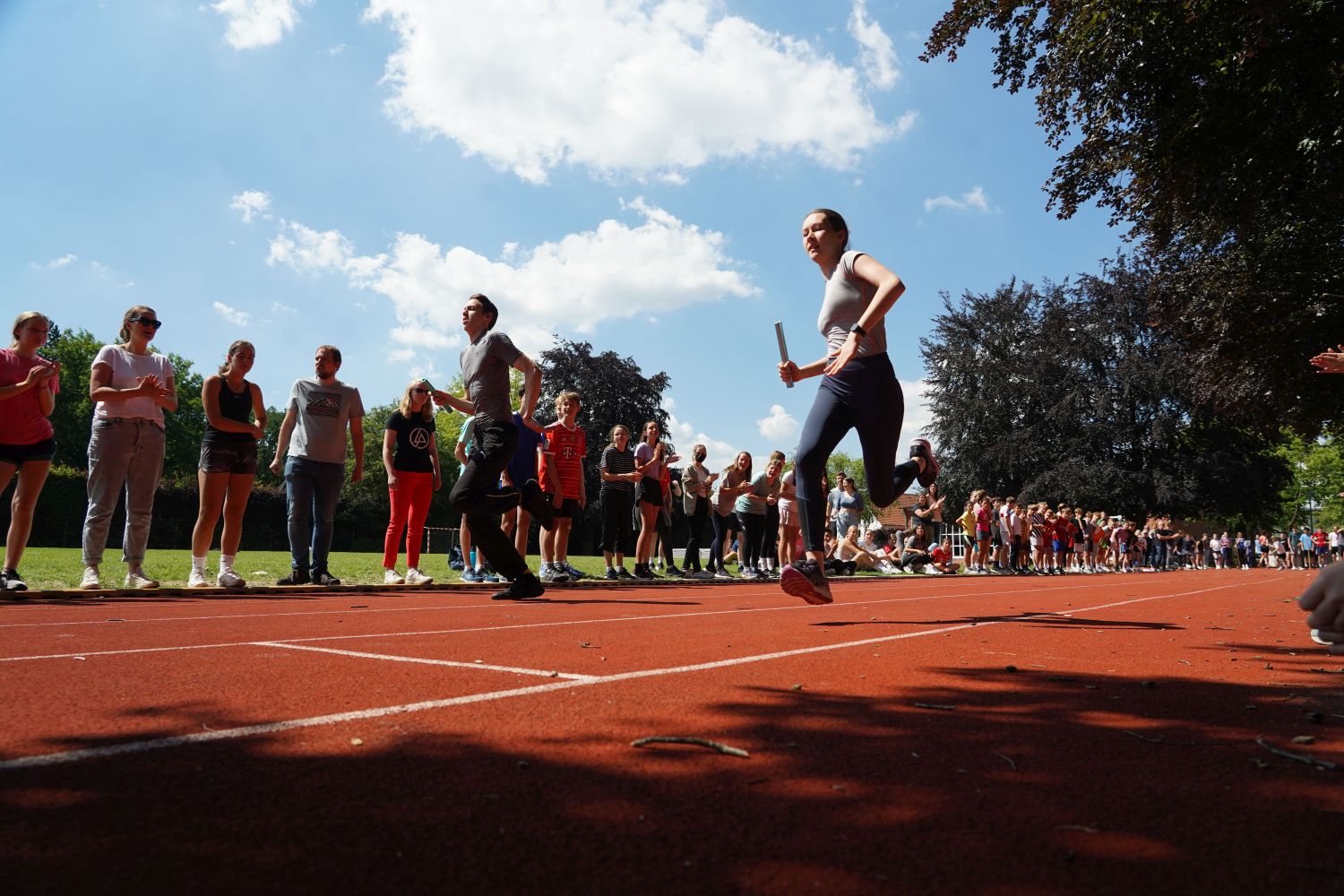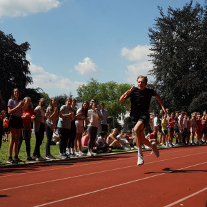 Das Technikteam spielte gleich zu Beginn entscheidend gute Beats, das Proviantteam des elften Jahrgangs ließ überzeugt den Waffelduft über den Schulhof schweben und machte den Grill für die Würstchen bereit, so dass die hungrigen Sportlerinnen und Sportler sich für die am Ende stattfindenden Pendelstaffeln nochmal stärken konnten. Diese waren sehr spannend. Klassensieger waren die 5a, 6b, 7c, 8c und 9a. Spontan lieferten sich das Sportprofil des 11. Jahrgangs und der P4-Kurs des 10. Jahrgangs ebenfalls ein packendes Duell. Am Ende war es ein Foto-Finish, so dass wir zwei Sieger küren konnten.