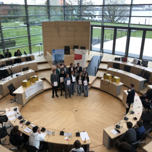 Beim gestrigen Landeswettbewerb im Kieler Landtag konnten Leonor Cavajal Erker und Ben Plaumann einen Doppelsieg im Kieler Plenarsaal erringen. Sie setzten sich in jeweils 3 Debatten gegen die besten Debattantinnen und Debattanten ganz Schleswig-Holsteins durch und fahren nun im Juni zum Bundeswettbewerb nach Berlin, um gegen die besten Teilnehmer der anderen 15 Bundesländer anzutreten.