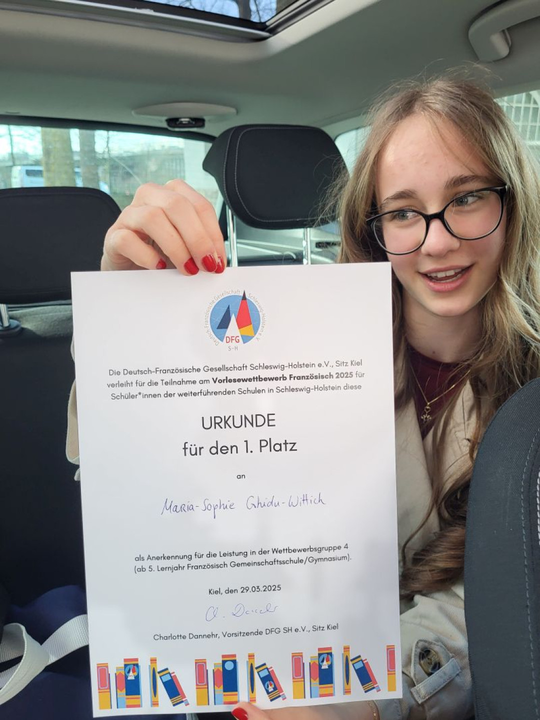 Wie bereits im vergangenen Jahr machten wir uns auch in diesem Jahr auf den Weg nach Kiel, um an dem Vorlesewettbewerb der Deutsch-Französischen Gesellschaft Schleswig-Holstein teilzunehmen, welcher am Samstag, den 29. März im „Haus der Initiativen“ ausgetragen wurde.