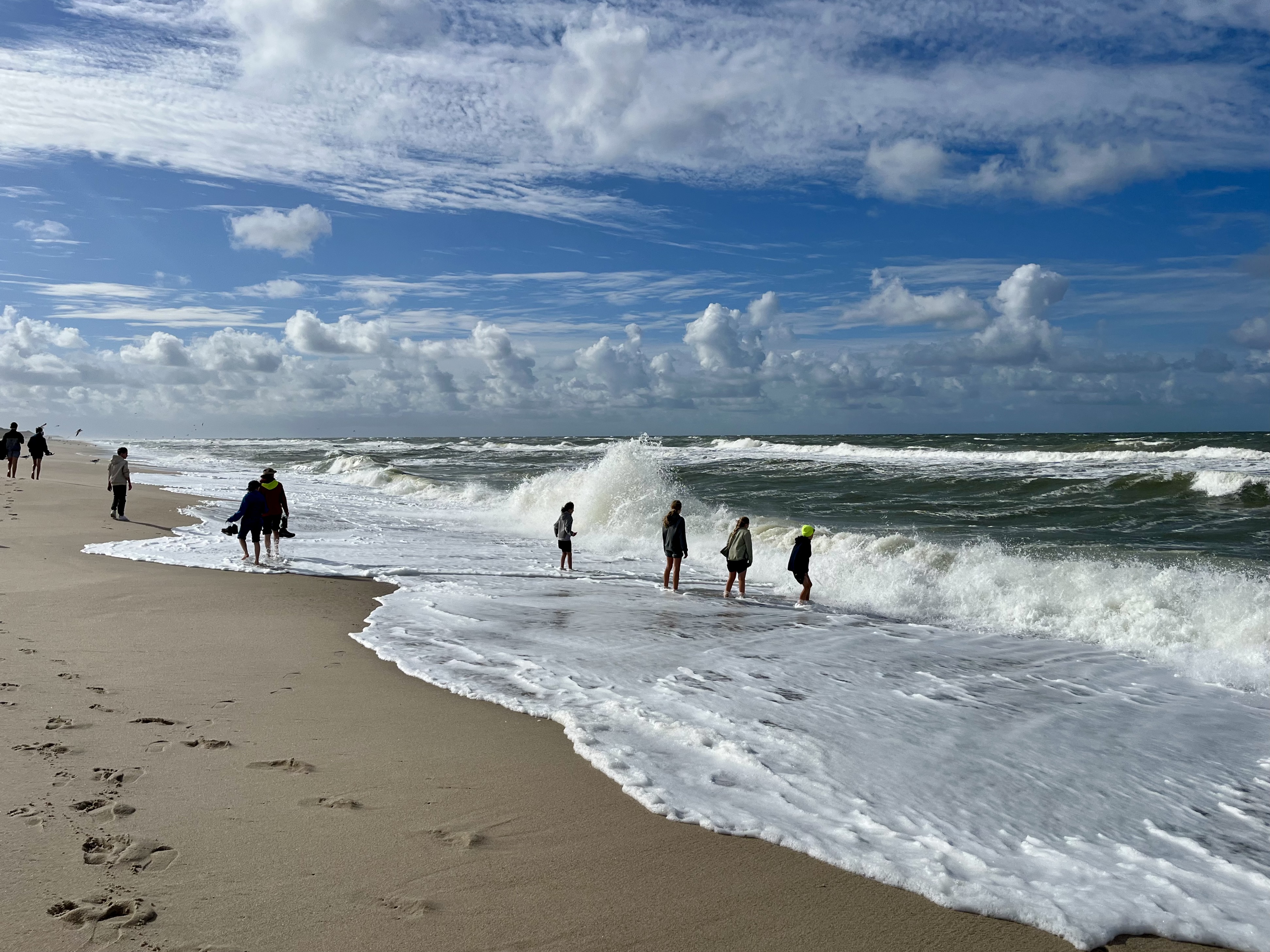 Das störte die gute Laune aber nicht, denn das aufgewühlte Meer zu beobachten, nach Seehunden Ausschau zu halten, Muscheln zu suchen, Strandburgen zu bauen, Fußball zu spielen oder einen „Kosmetiksalon zu eröffnen“ reichten bei leckerer Verpflegung eigentlich schon für eine gelungene Fahrt aus.