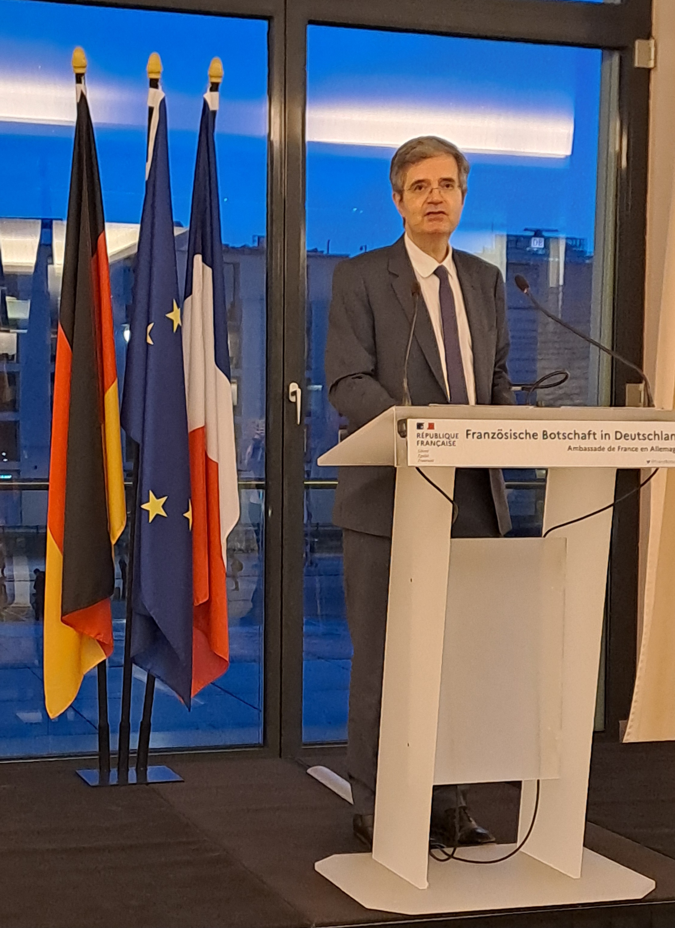 Ein besonderes Highlight der Konferenz war die Einladung in die Französische Botschaft in Berlin. Dort wurde die Delegation feierlich vom französischen Botschafter François Delattre empfangen. In seiner Ansprache betonte dieser die herausragende Bedeutung der deutsch-französischen Freundschaft und erinnerte an den Élysée-Vertrag, der seit mehr als sechs Jahrzehnten die Grundlage der Zusammenarbeit zwischen beiden Ländern bildet und heute aktueller denn je ist. (siehe Foto)