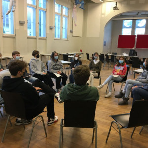 Doch auch, wie wichtig die performance ist, konnten die Schülerinnen und Schüler erfahren. Dank der professionellen Ausrüstung von Bas Böttcher konnten sie so bereits ihre ersten Textentwürfe einsprechen, um weiter an ihren Vortragskünsten zu feilen. Wer weiß, vielleicht bekommen auch wir sie noch einmal im Rahmen eines bunten Abends zu hören? So oder so waren es gewinnbringende Stunden, in denen jede/r entdecken durfte, wieviel Kreativität in ihm bzw. ihr steckt. Wir danken ganz herzlich dem Schulverein der Stormarnschule, der wie in jedem Jahr die Kosten dafür übernommen hat und dadurch diesen „wokshoppigsten alle Workshops“ (Schülerzitat) möglich gemacht hat.