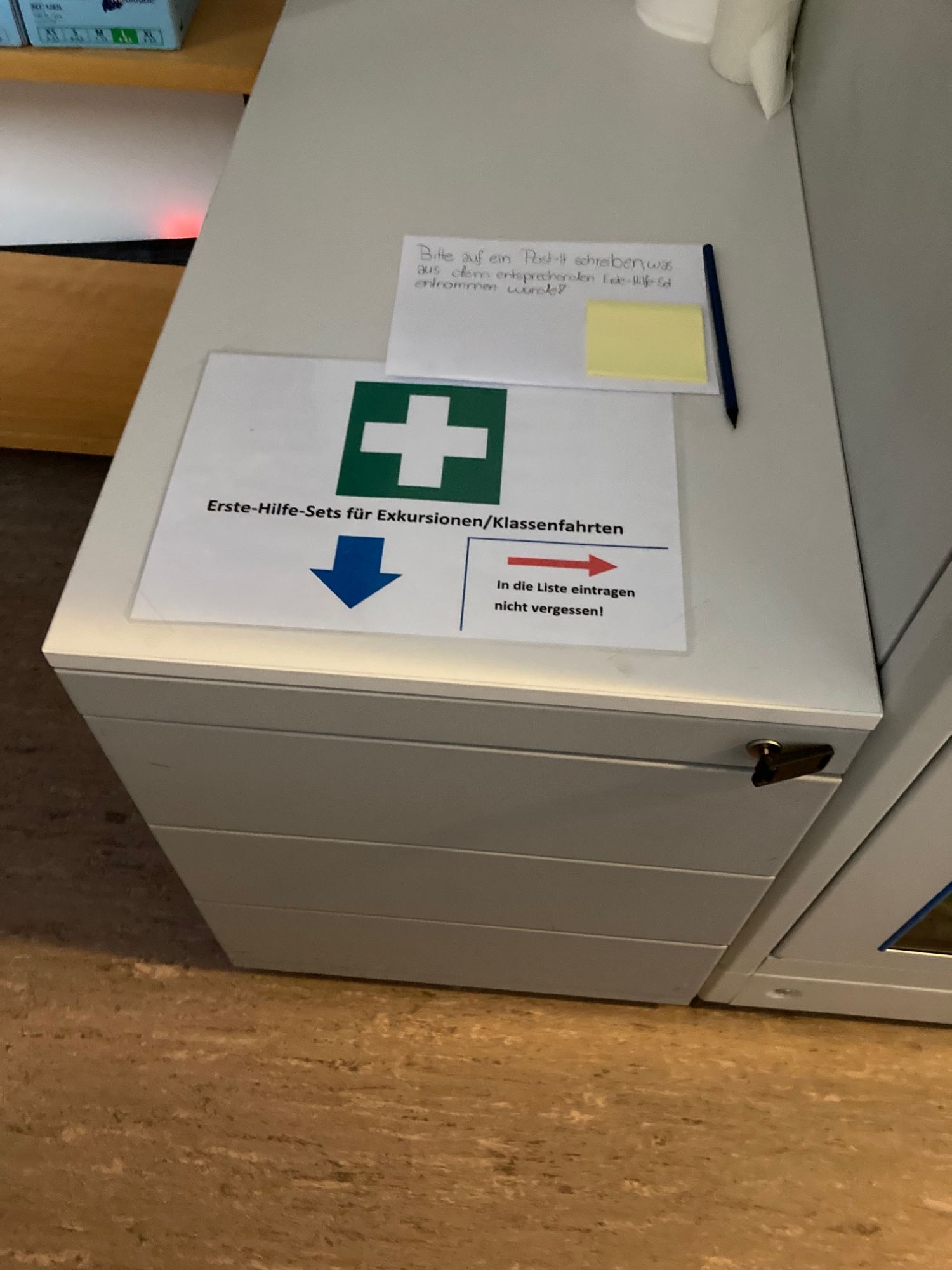 Außerdem konnten die Schulsanitäter durch drei bei Bitmarck ausrangierte Schubladencontainer ihr Ordnungssystem verbessern - vielen Dank!